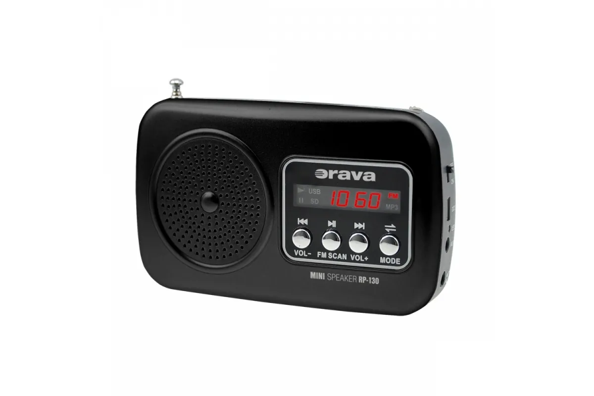 Orava brings you a portable radio that can also be used as a mini speaker system with enhanced acoustics. Thanks to the built-in FM tuner, you can tune in to your favorite radio station. It is also suitable for connecting to MP3 players, PCs, mobile phones, but there is also a micro SD and SD card slot, USB input and AUX input. The player allows you to play MP3 in an audio quality comparable to a CD, and you can control the files using the buttons on the unit. You can also listen to music through the headphones. The RP-130 is a portable mini speaker system thanks to a rechargeable Li-ion battery via USB.