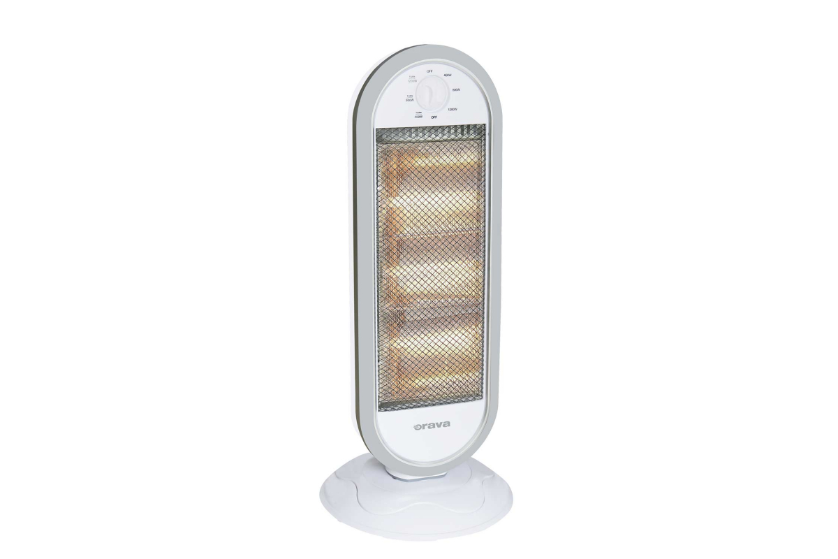 The ORAVA HO-83 halogen heater warms you always and immediately thanks to its high heating efficiency. You can be heated by up to 3 heating elements at once. You can choose from 3 levels of heating power settings. In the first mode, you will be heated by only one halogen tube with a power of 400 W, when setting the second mode, two halogen tubes with a power of 800 W will heat you, and in the case of the third mode, three halogen tubes with a power of 1,200 W. Setting these powers is carried out using a rotary control. Its light weight and practical handle guarantee easy portability wherever you need it. The simple design in gray fits perfectly in any room. Thanks to the oscillation functions, it can rotate up to an angle of 70° for a more efficient spread of heat throughout the room. The halogen heater also has a safety switch off in case the device falls over. This heater is guaranteed to have high heating efficiency without swirling the air.